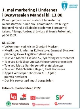 Program 1.mai 2022 i Lindesnes (se vedlegg)